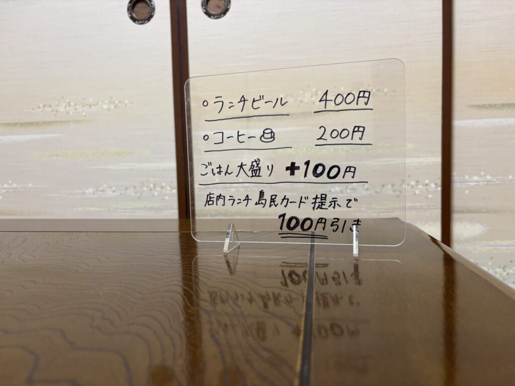 更に、島民カード提示で100円引き。ランチが700円で食べれます。